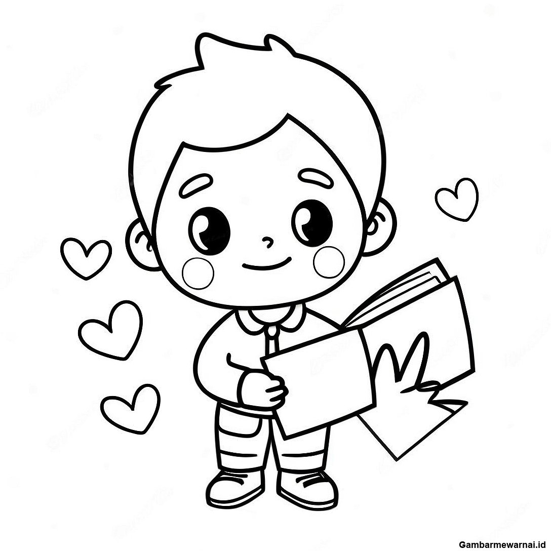 Halaman Mewarnai Anak Laki-Laki Lucu Mengirim Surat Cinta