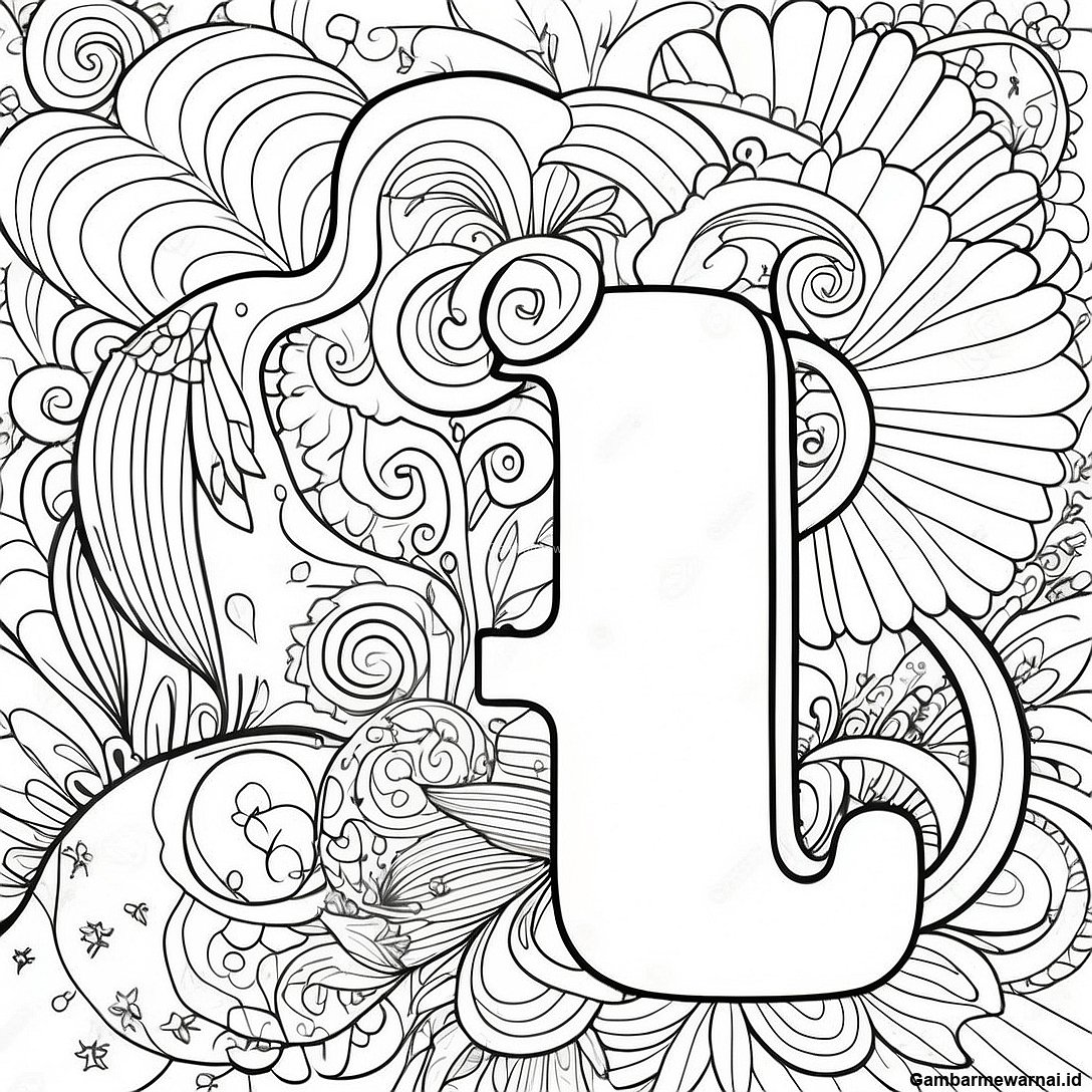 Halaman Mewarnai Angka 1 Yang Besar Dan Tebal