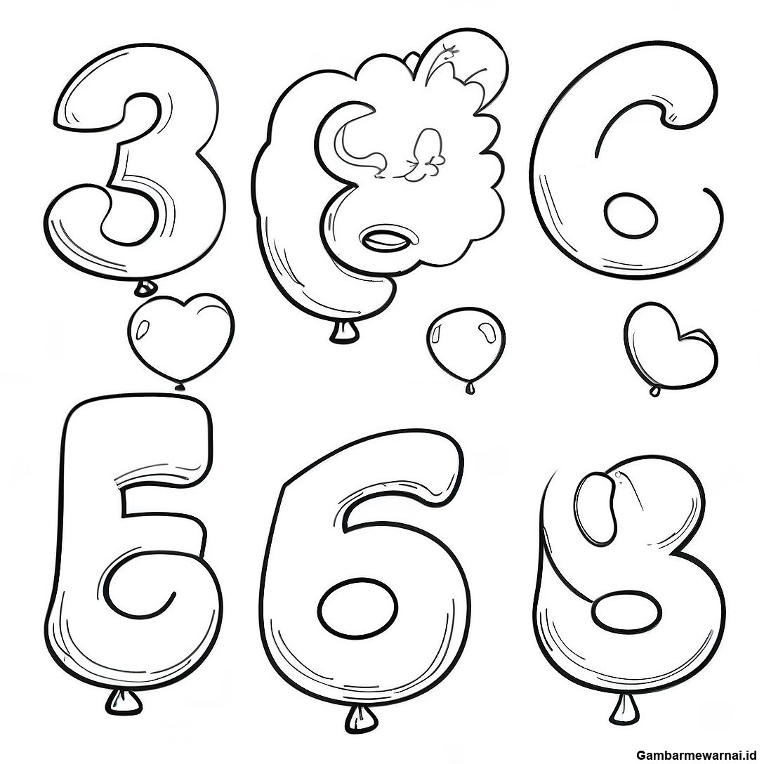 Halaman Mewarnai Angka Balon Berwarna