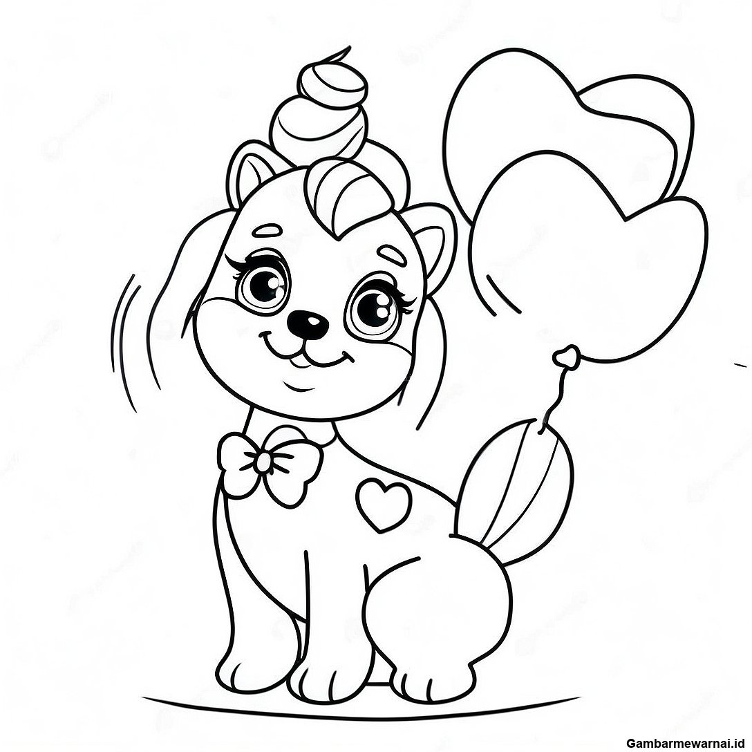 Halaman Mewarnai Anjing Puppy Barbie Dengan Balon Hati