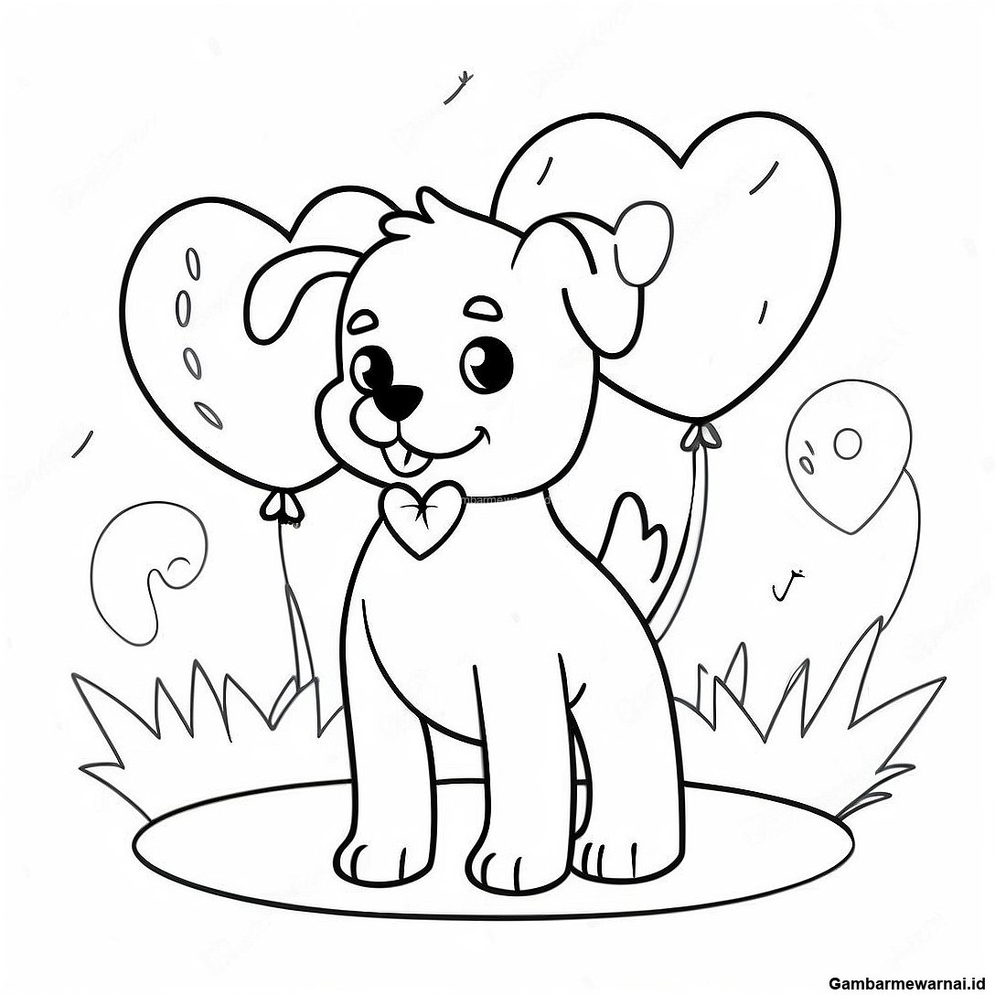 Halaman Mewarnai Anjing Puppy Barbie Dengan Balon Hati