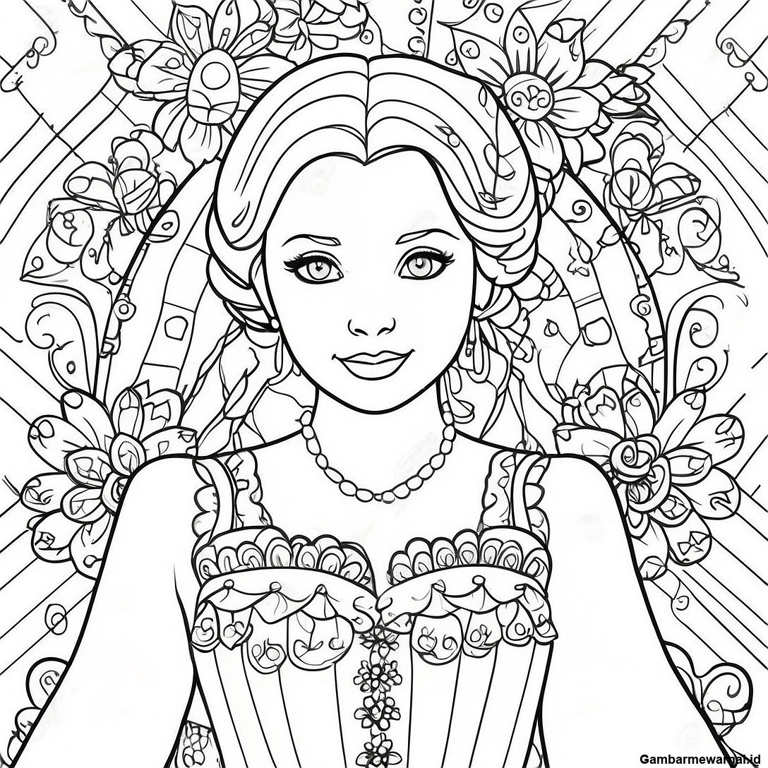 Halaman Mewarnai Anna Dengan Gaun Indah