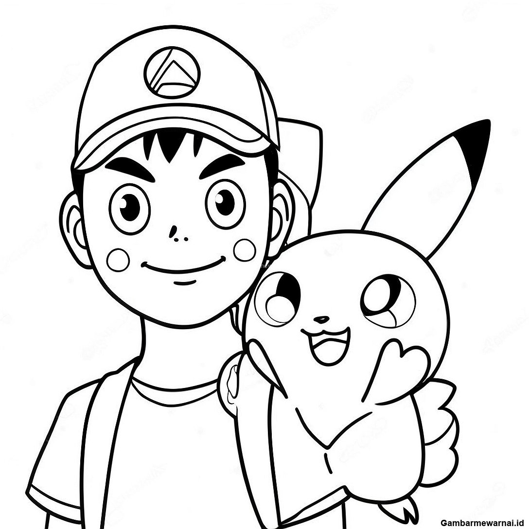 Halaman Mewarnai Ash Ketchum Dengan Pikachu