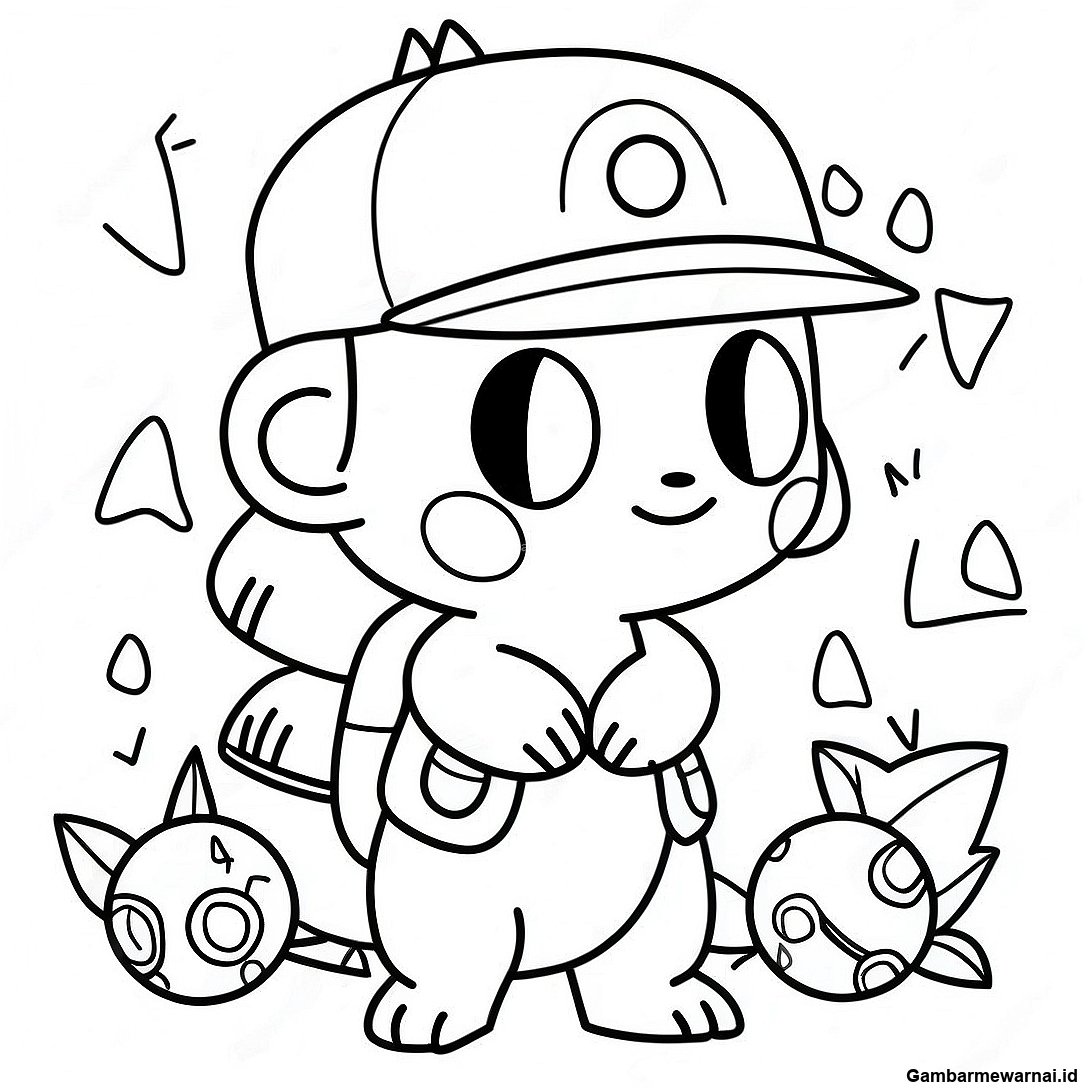 Halaman Mewarnai Ash Yang Petualang Dengan Pokeball