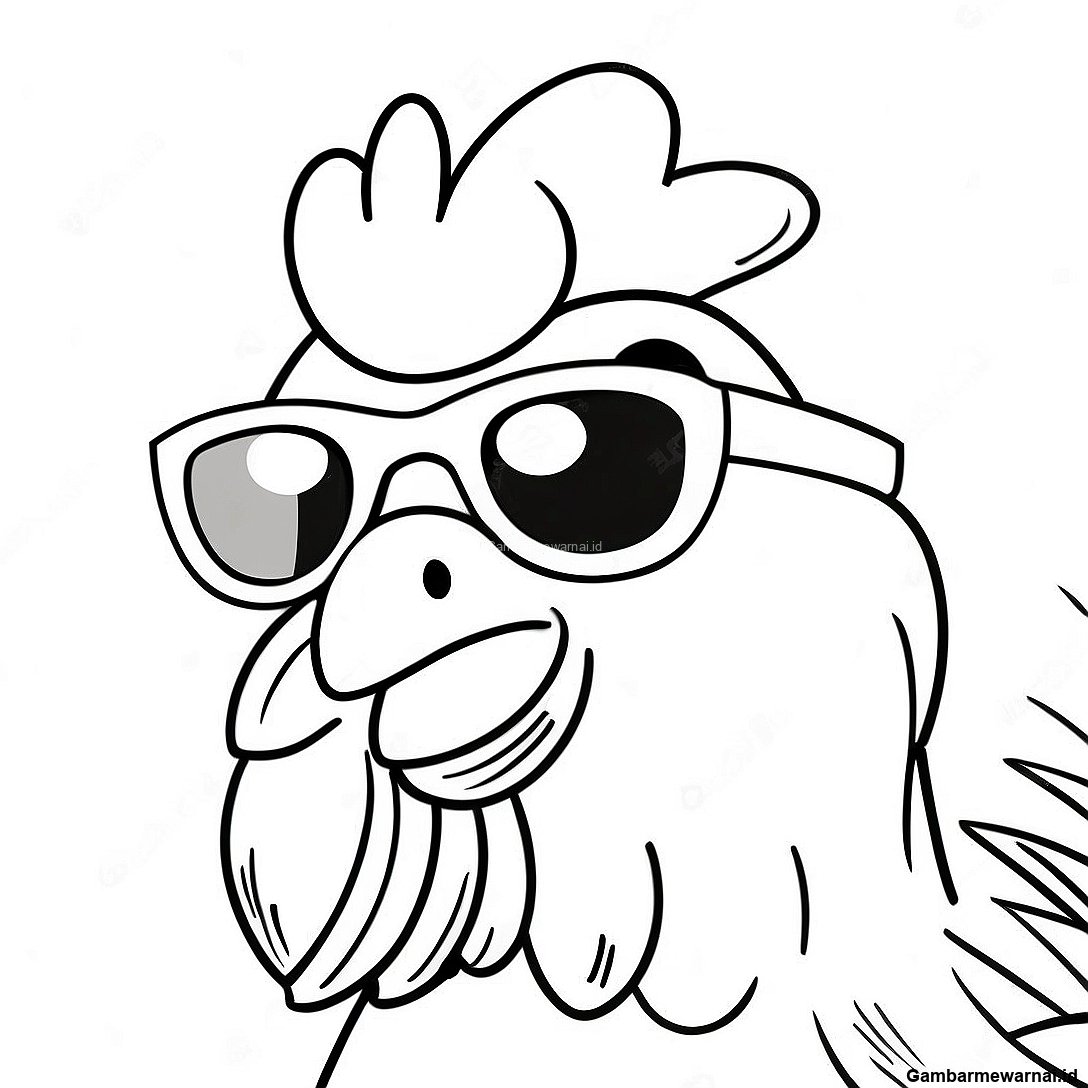 Halaman Mewarnai Ayam Lucu Dengan Kacamata Hitam