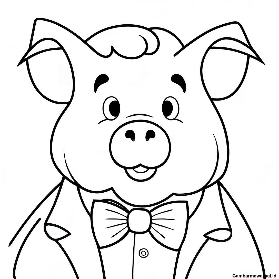 Halaman Mewarnai Babi Besar Dengan Dasi