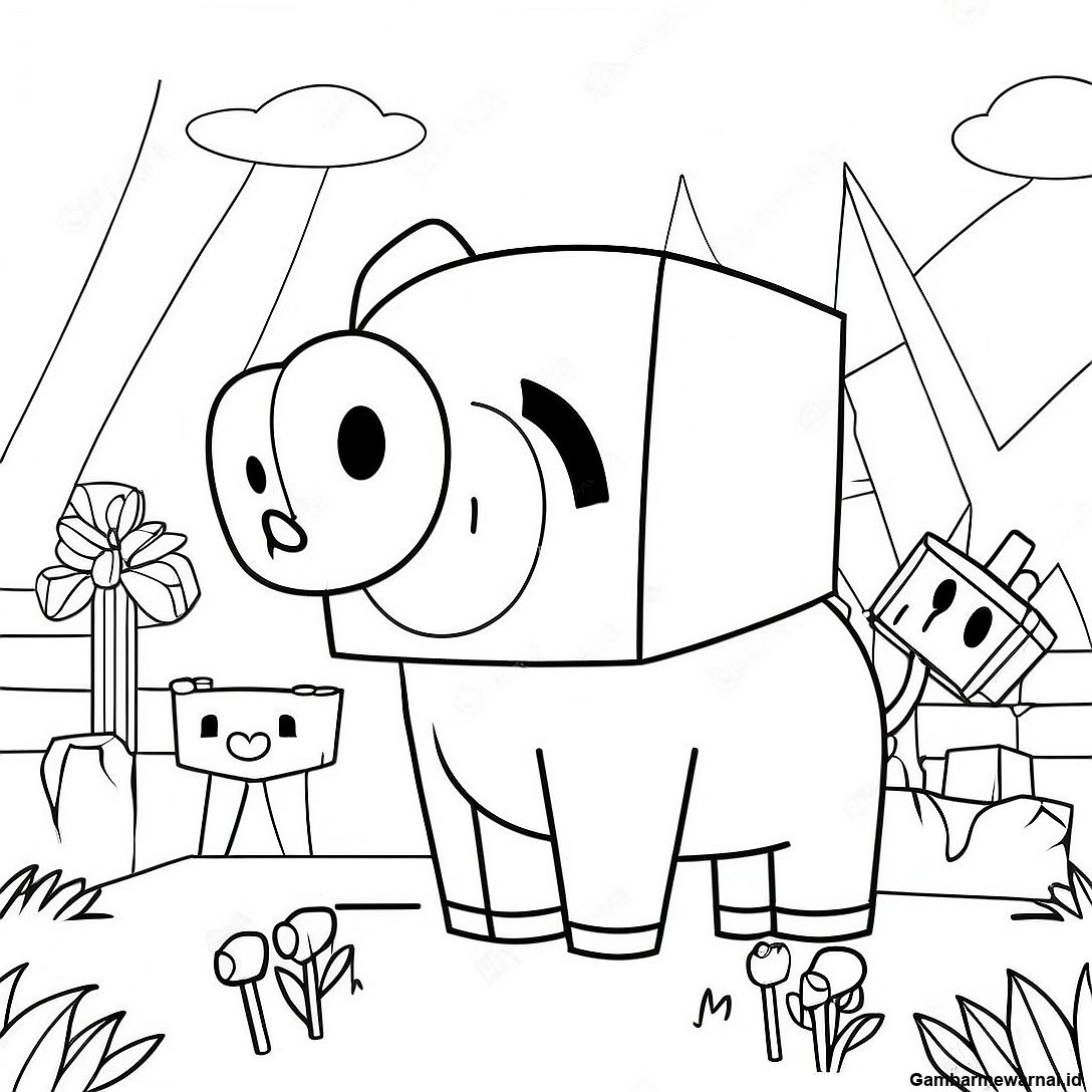 Gambar Mewarnai Babi Minecraft Mengendarai Pelana