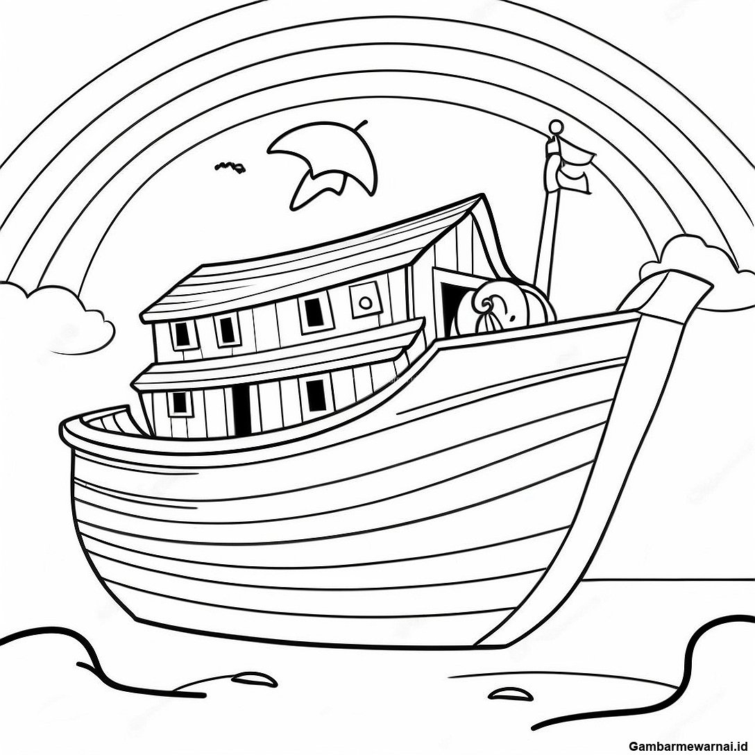 Halaman Mewarnai Bahtera Nuh Dengan Pelangi