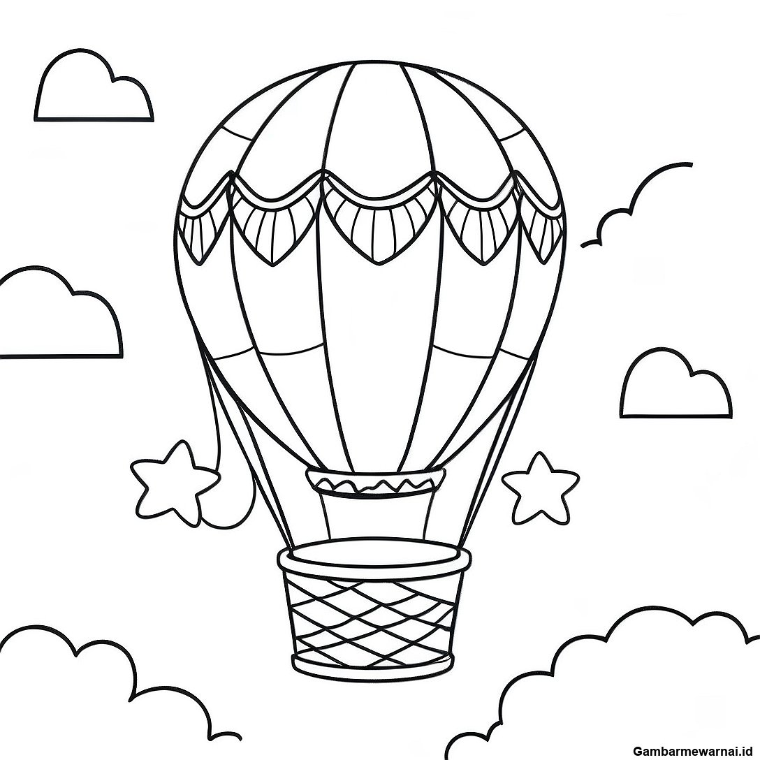 Halaman Mewarnai Balon Udara Berwarna-Warni Di Langit