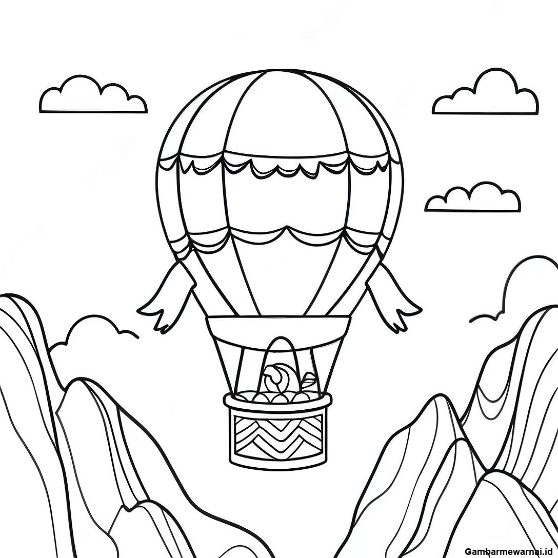 Halaman Mewarnai Balon Udara Vintage Mengapung Di Atas Gunung