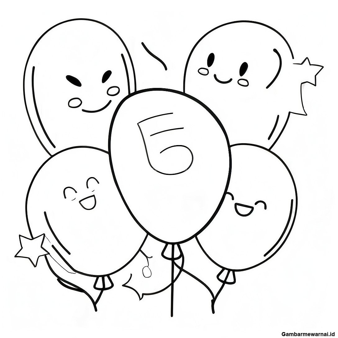 Halaman Mewarnai Balon Ulang Tahun Ke-5 Yang Ceria