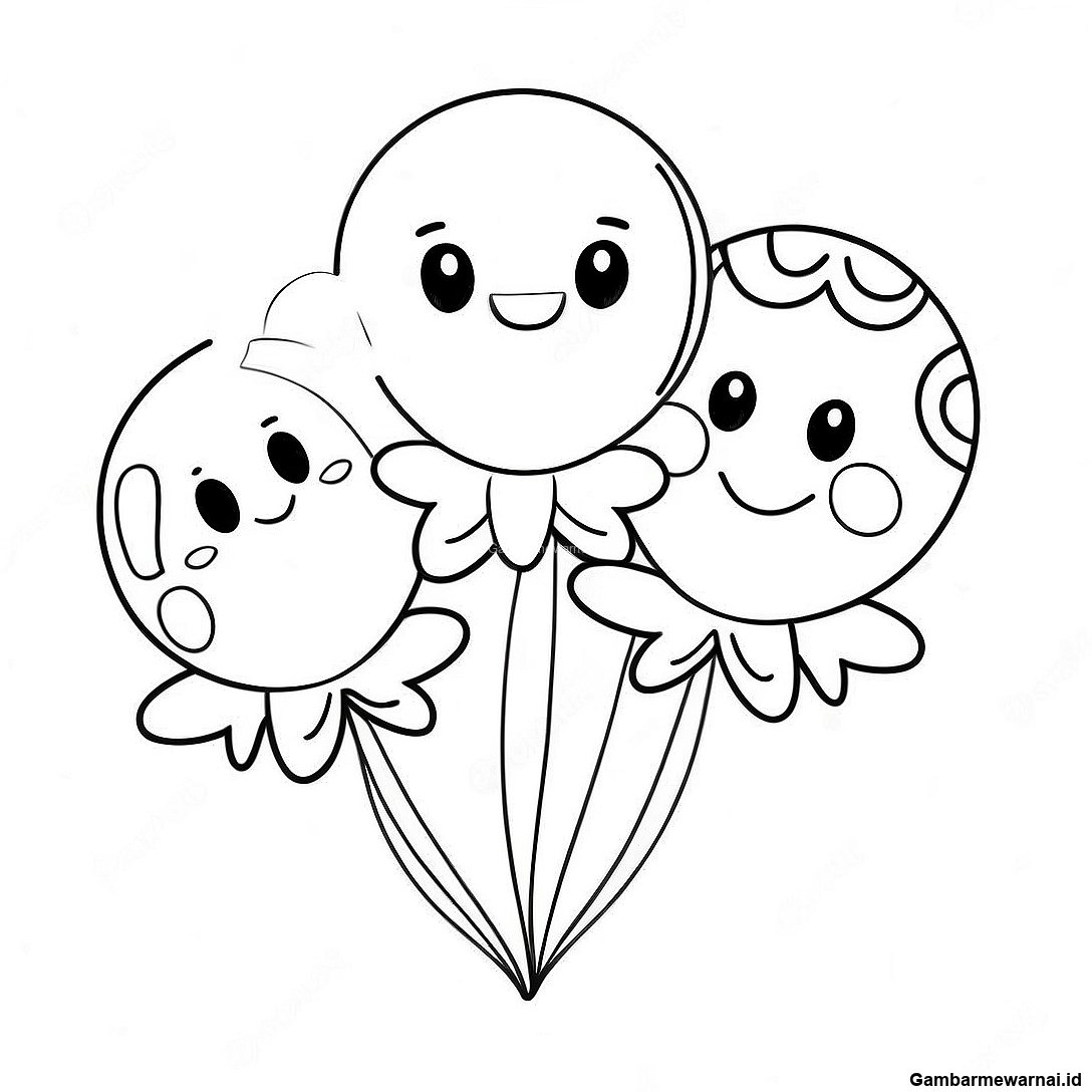 Halaman Mewarnai Balon Ulang Tahun Meriah