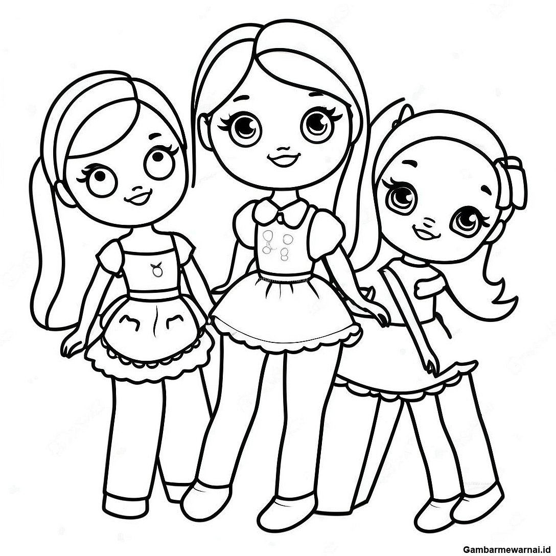 Halaman Mewarnai Barbie Chelsea Yang Imut Bersama Teman