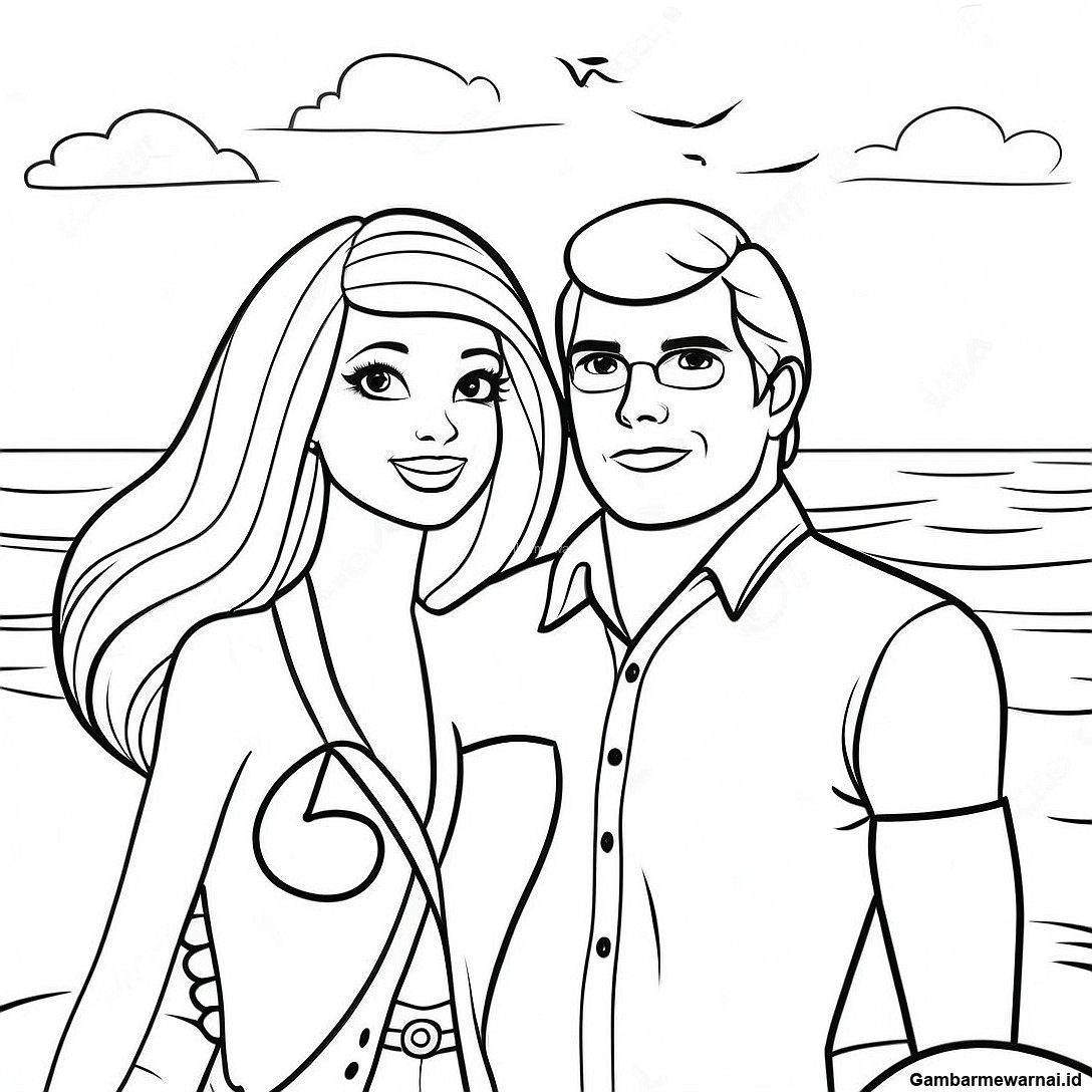 Halaman Mewarnai Barbie Dan Ken Di Pantai