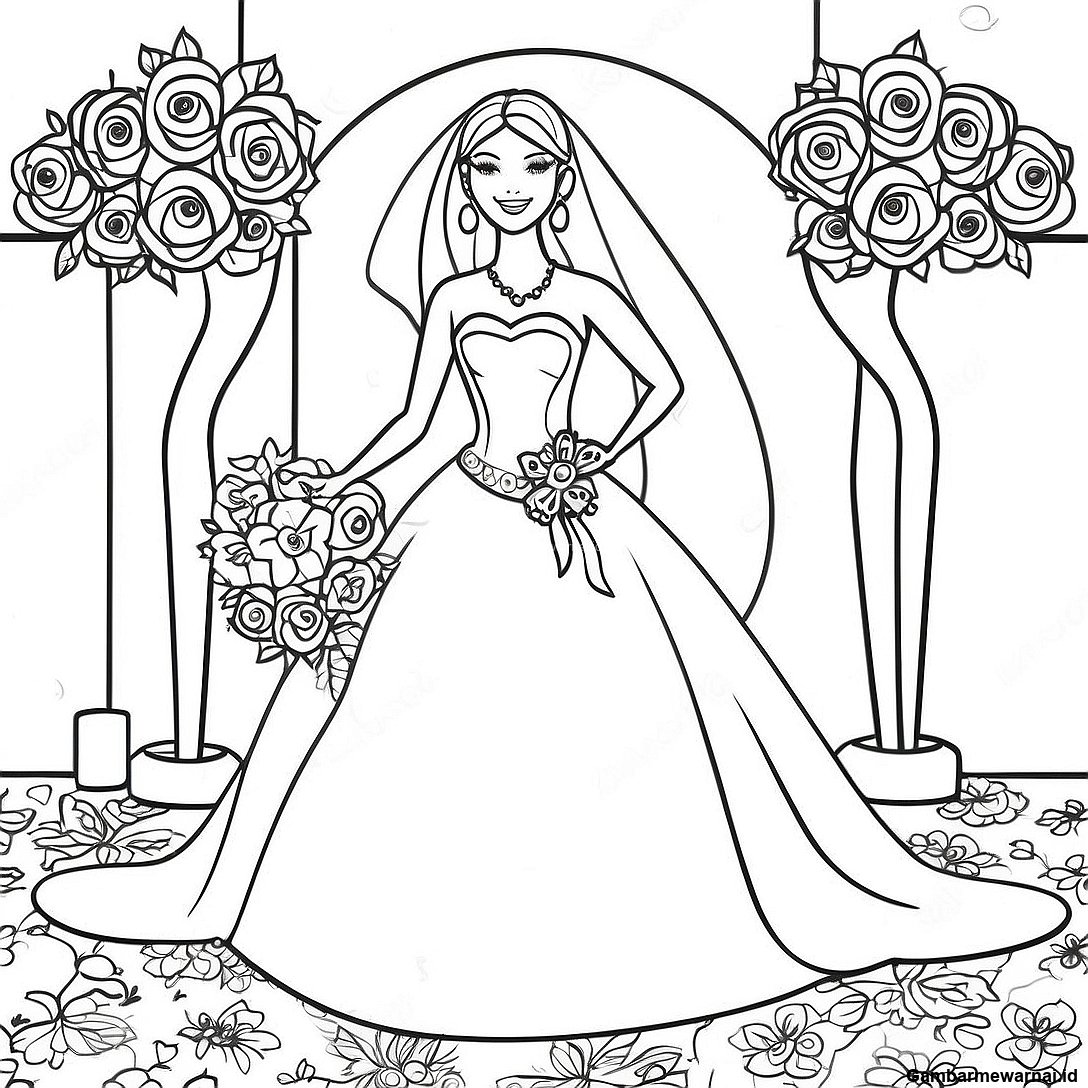 Halaman Mewarnai Barbie Pernikahan Yang Menawan Dengan Bunga