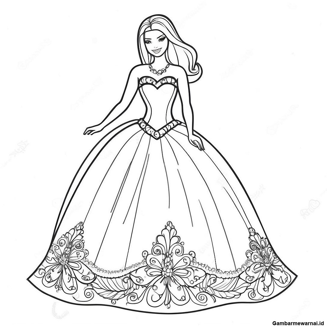 Unduh PDF yang Dapat Dicetak dari Halaman Mewarnai Barbie Putri Dengan Gaun Berkilau