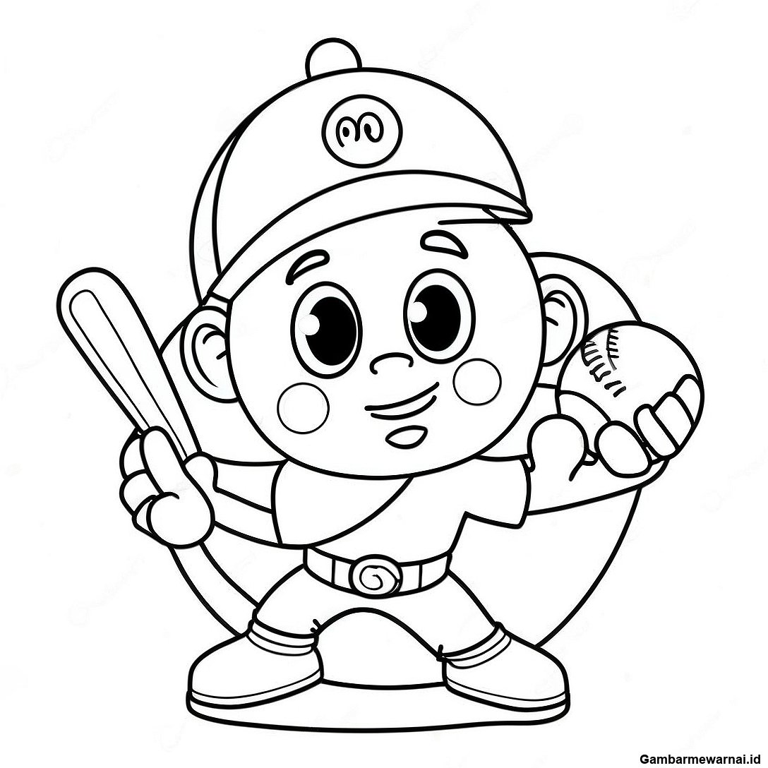 Halaman Mewarnai Baseball Kartun Yang Imut