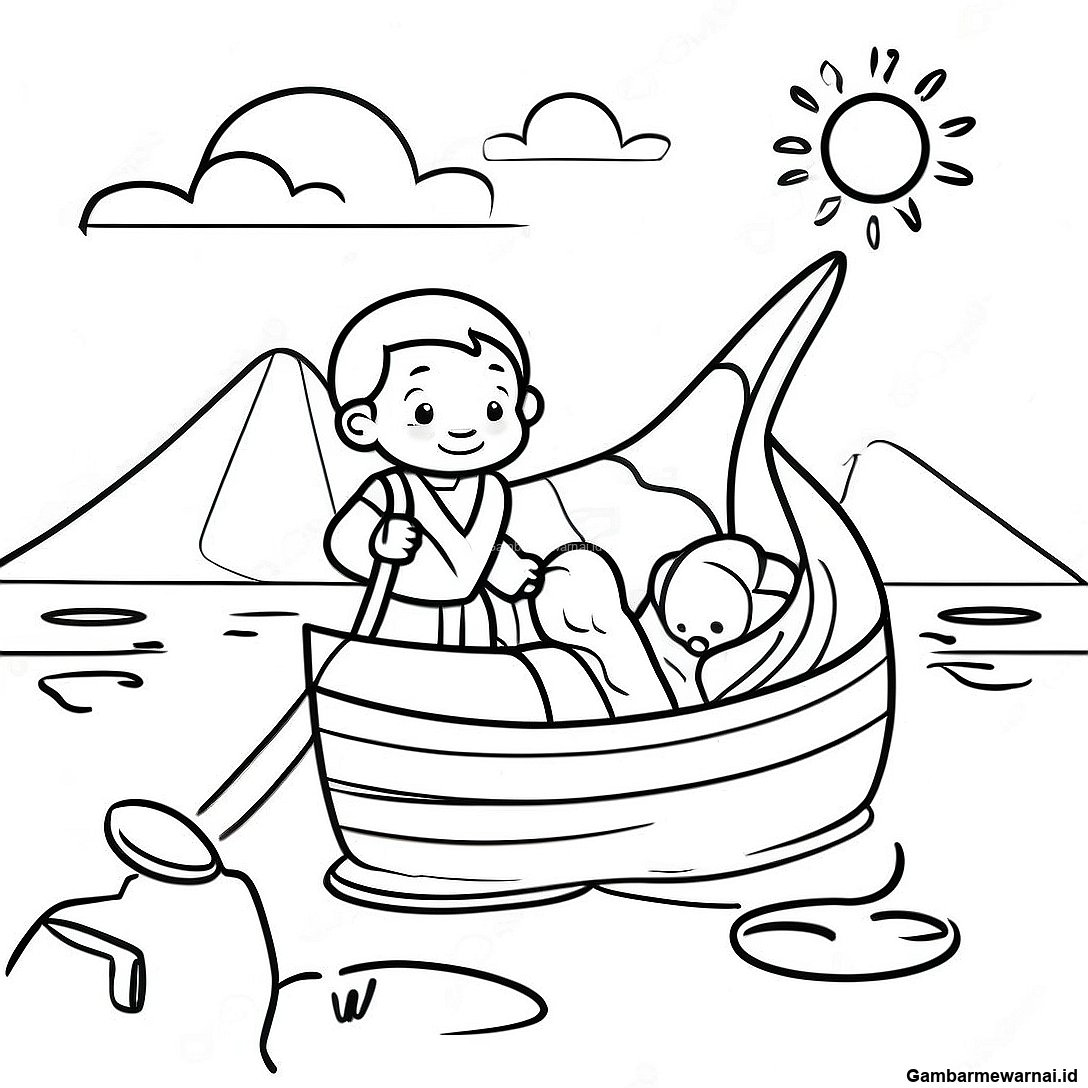 Halaman Mewarnai Bayi Musa Dengan Sungai Nil