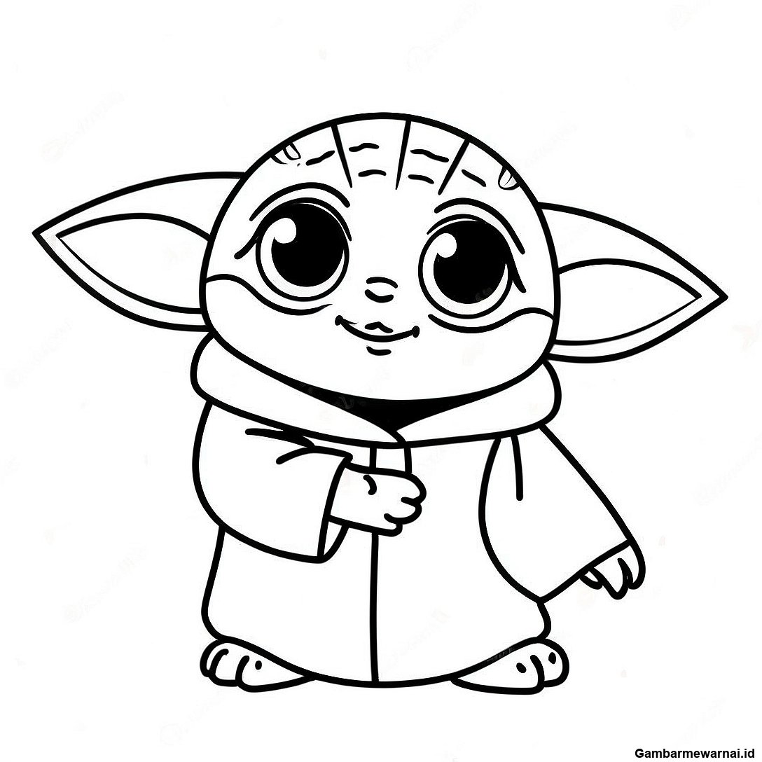 Halaman Mewarnai Bayi Yoda Imut Dengan Mata Besar