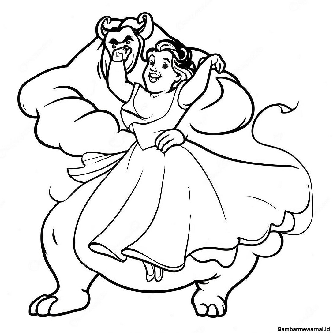 Halaman Mewarnai Belle Menari Dengan Sang Beast
