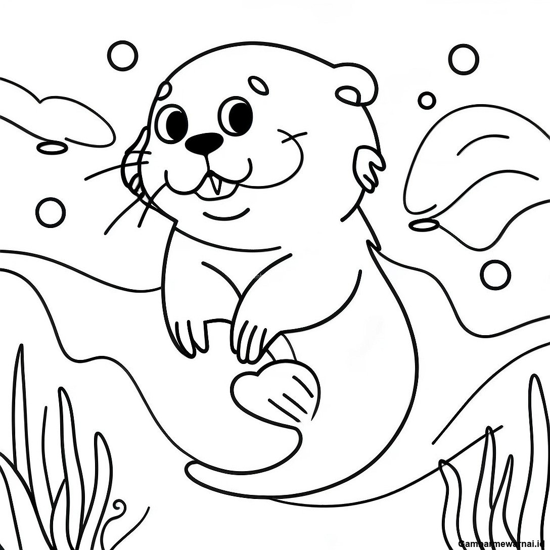 Halaman Mewarnai Berang Berang Ceria Berenang