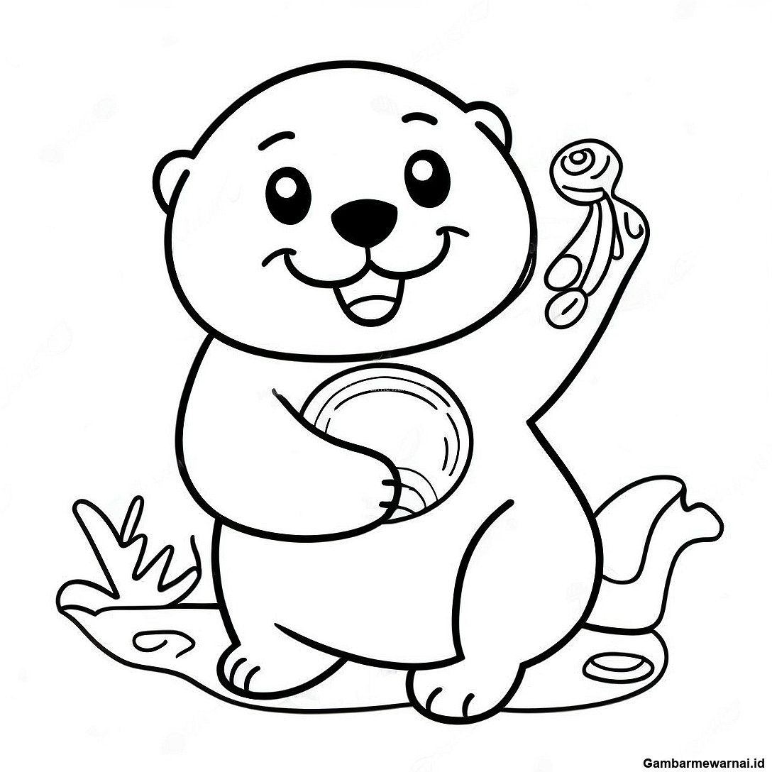 Unduh PDF yang Dapat Dicetak dari Halaman Mewarnai Berang-Berang Laut Bahagia Memegang Cangkang