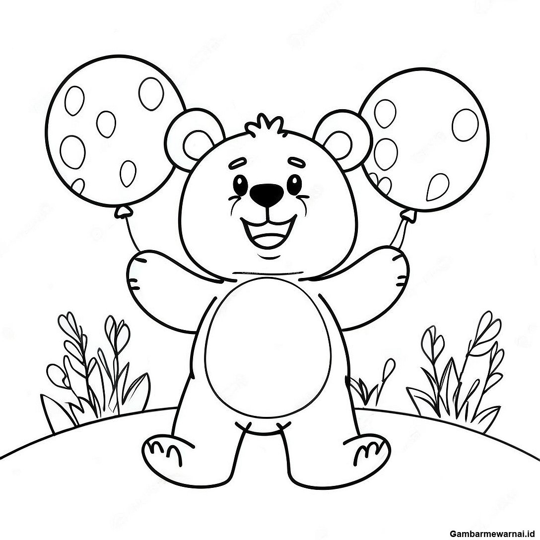 Halaman Mewarnai Beruang Coklat Bahagia Dengan Balon