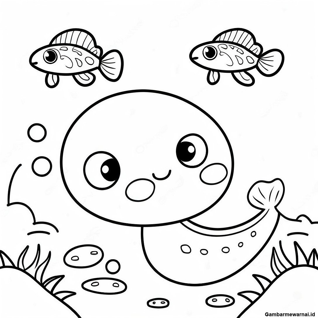 Unduh PDF yang Dapat Dicetak dari Halaman Mewarnai Berudu Lucu Berenang
