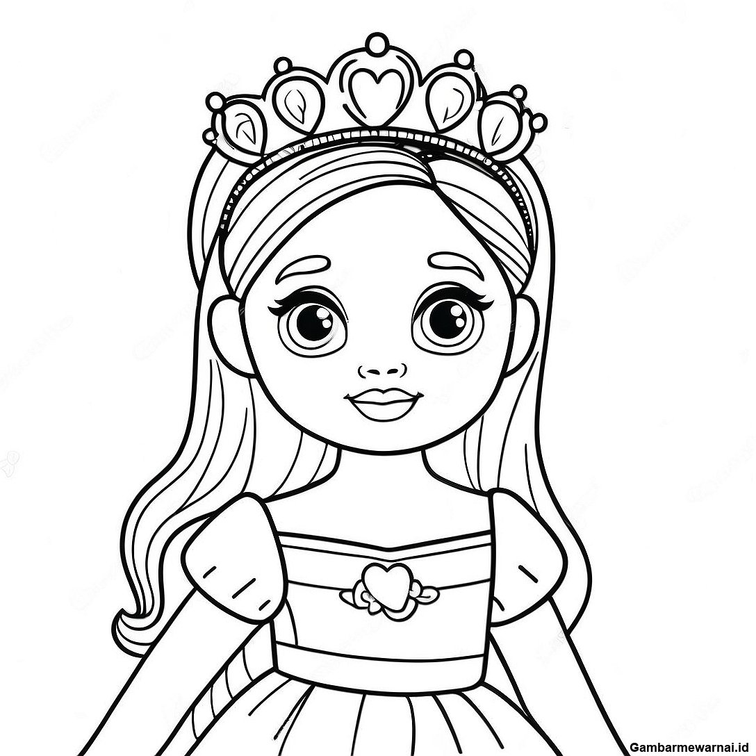 Halaman Mewarnai Boneka Putri Dengan Tiara Berkilau