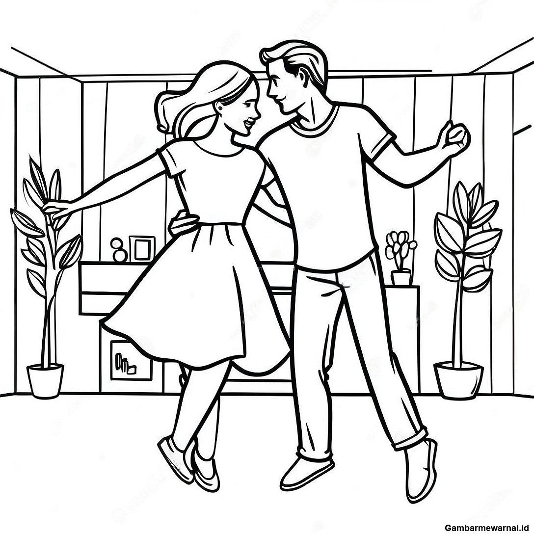 Halaman Mewarnai Boyfriend Dan Girlfriend Menari