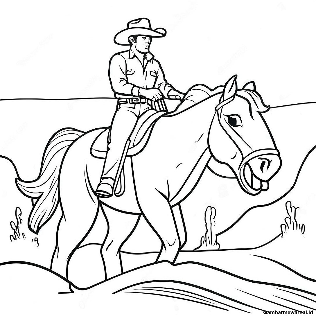 Halaman Mewarnai Bronco Dengan Penunggang Koboi