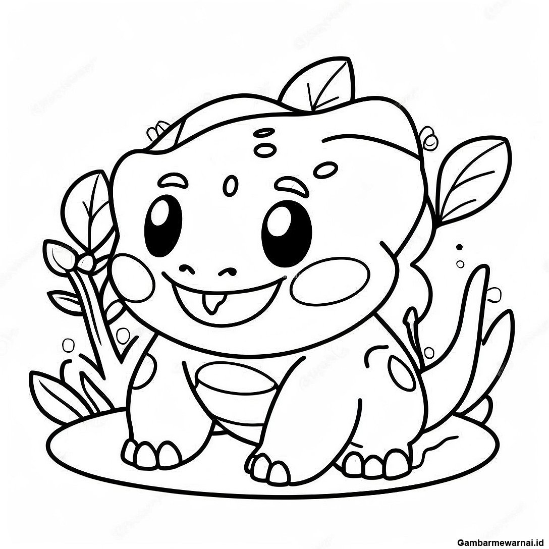 Halaman Mewarnai Bulbasaur Bahagia Dengan Senyuman Besar