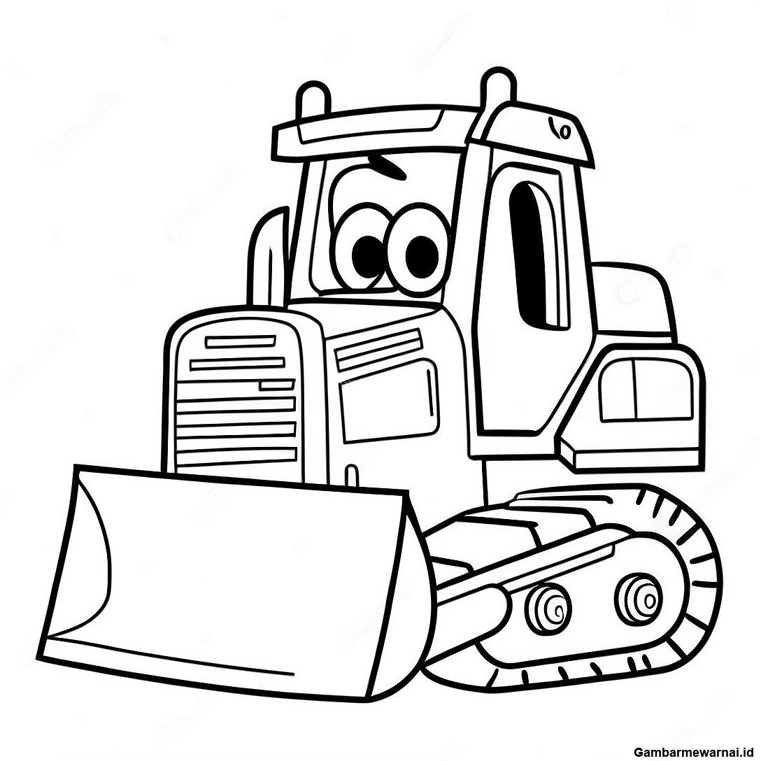Halaman Mewarnai Bulldozer Kartun Lucu 53034 11599