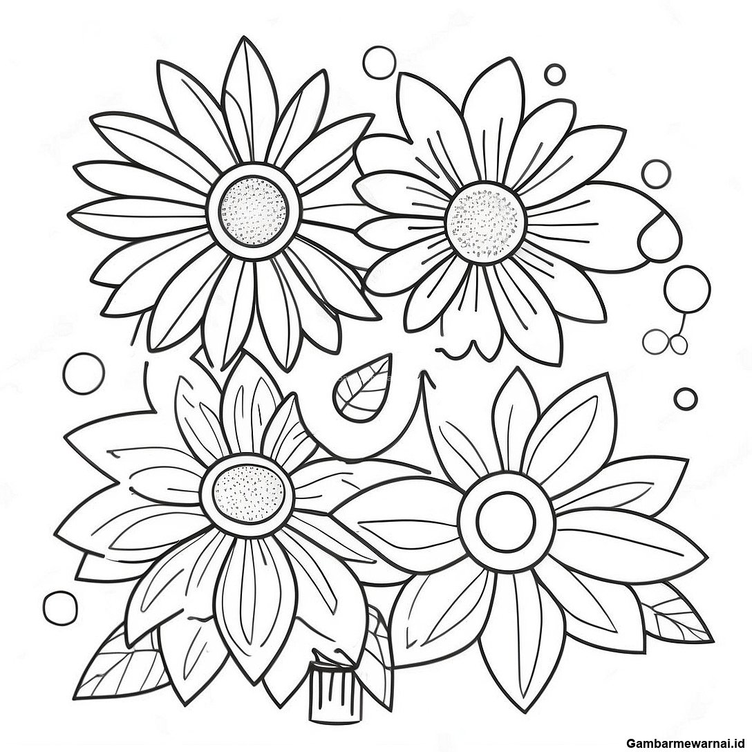 Halaman Mewarnai Bunga Berwarna Warni Yang Mekar