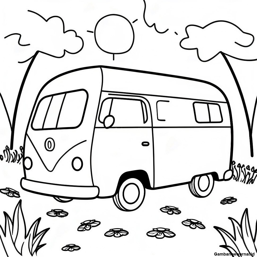 Halaman Mewarnai Camper Berwarna Warni Di Alam 82009 23602