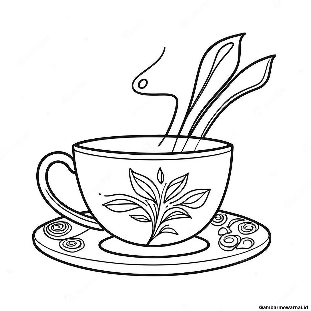 Halaman Mewarnai Cangkir Teh Mewah Dengan Piring
