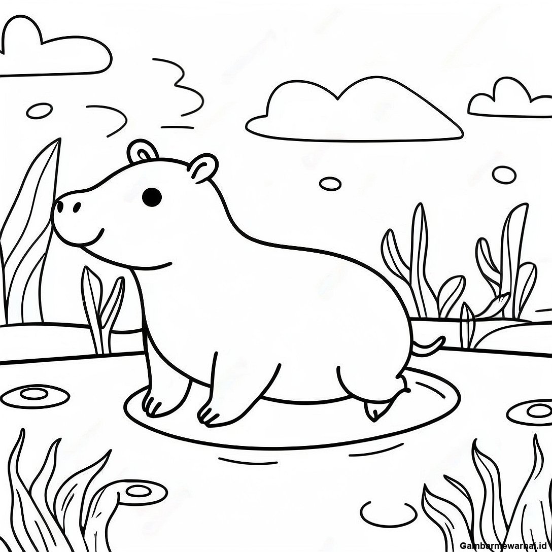 Unduh PDF yang Dapat Dicetak dari Halaman Mewarnai Capybara Bahagia Berenang