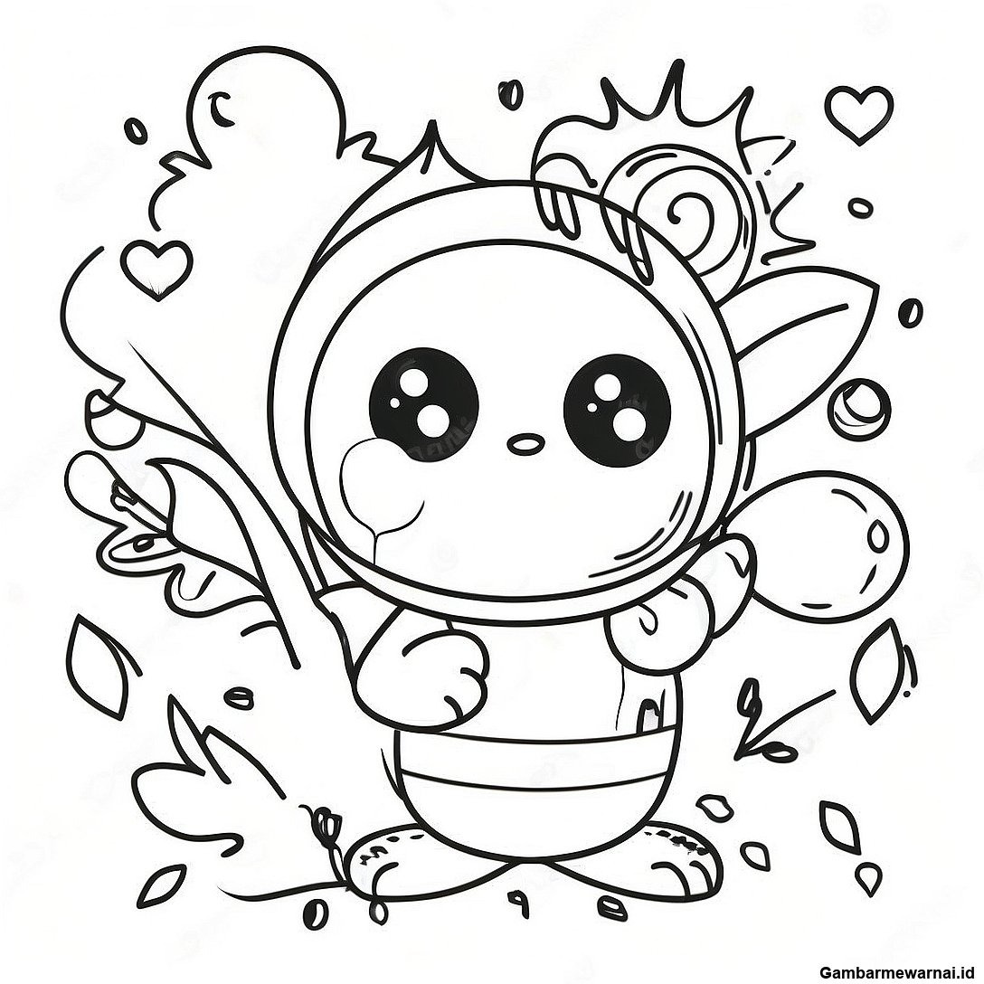 Gambar Mewarnai Kucing Kecil yang Ceria di Musim Semi
