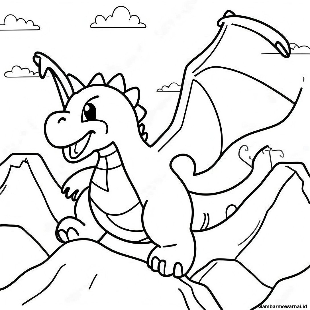 Halaman Mewarnai Charizard Terbang Di Atas Gunung