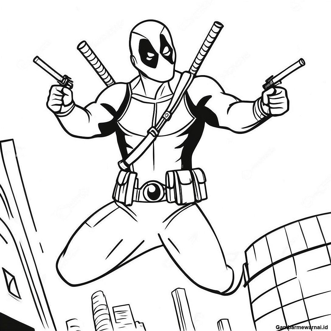 Halaman Mewarnai Deadpool Dalam Aksi