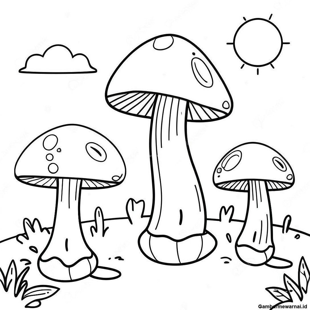 Halaman Mewarnai Desa Jamur Fantasi