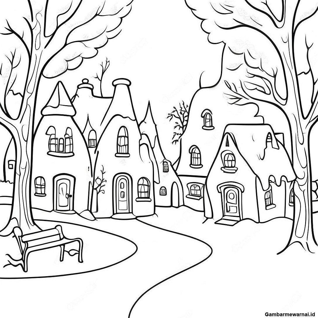 Halaman Mewarnai Desa Musim Dingin Yang Menawan