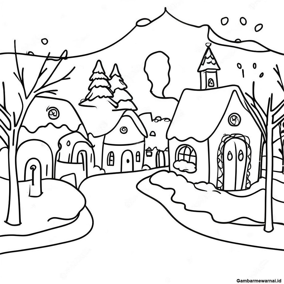 Unduh PDF yang Dapat Dicetak dari Halaman Mewarnai Desa Natal Meriah