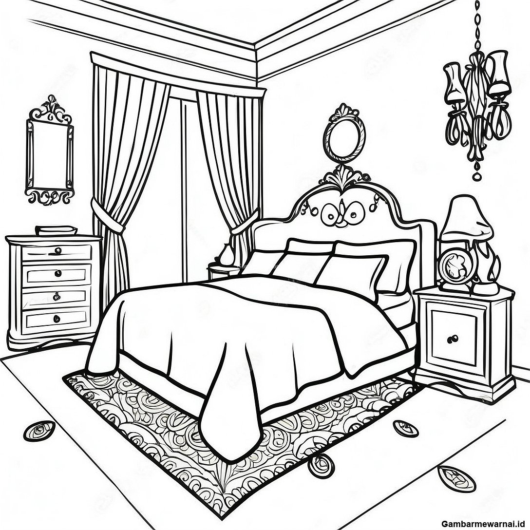 Halaman Mewarnai Desain Interior Kamar Tidur Yang Anggun
