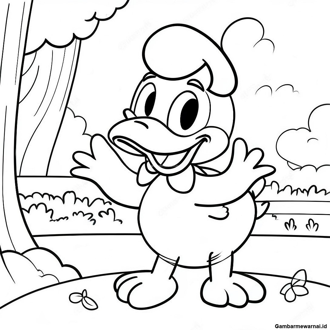 Halaman Mewarnai Donald Duck Bermain Di Taman