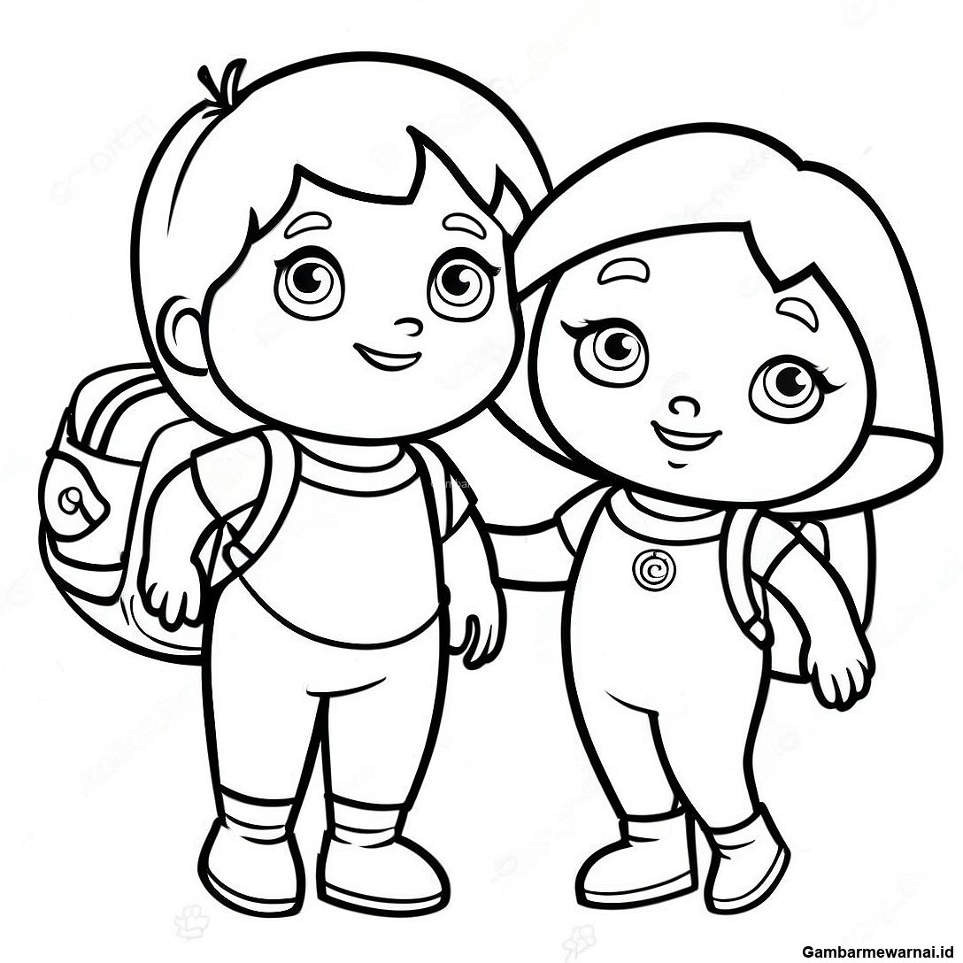 Halaman Mewarnai Dora Dan Boots Dengan Ransel