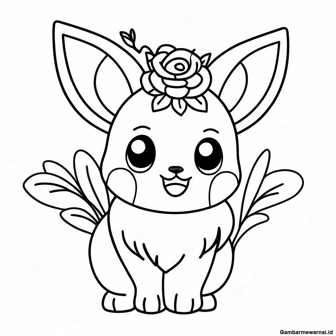 Halaman Mewarnai Eevee Dengan Mahkota Bunga