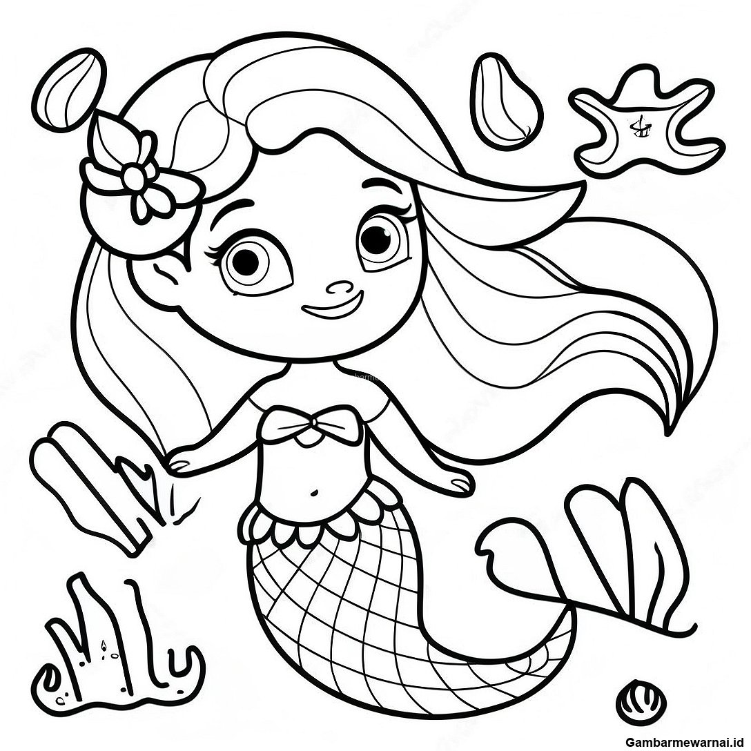 Halaman Mewarnai Elsa Putri Duyung Yang Anggun Dengan Kerang
