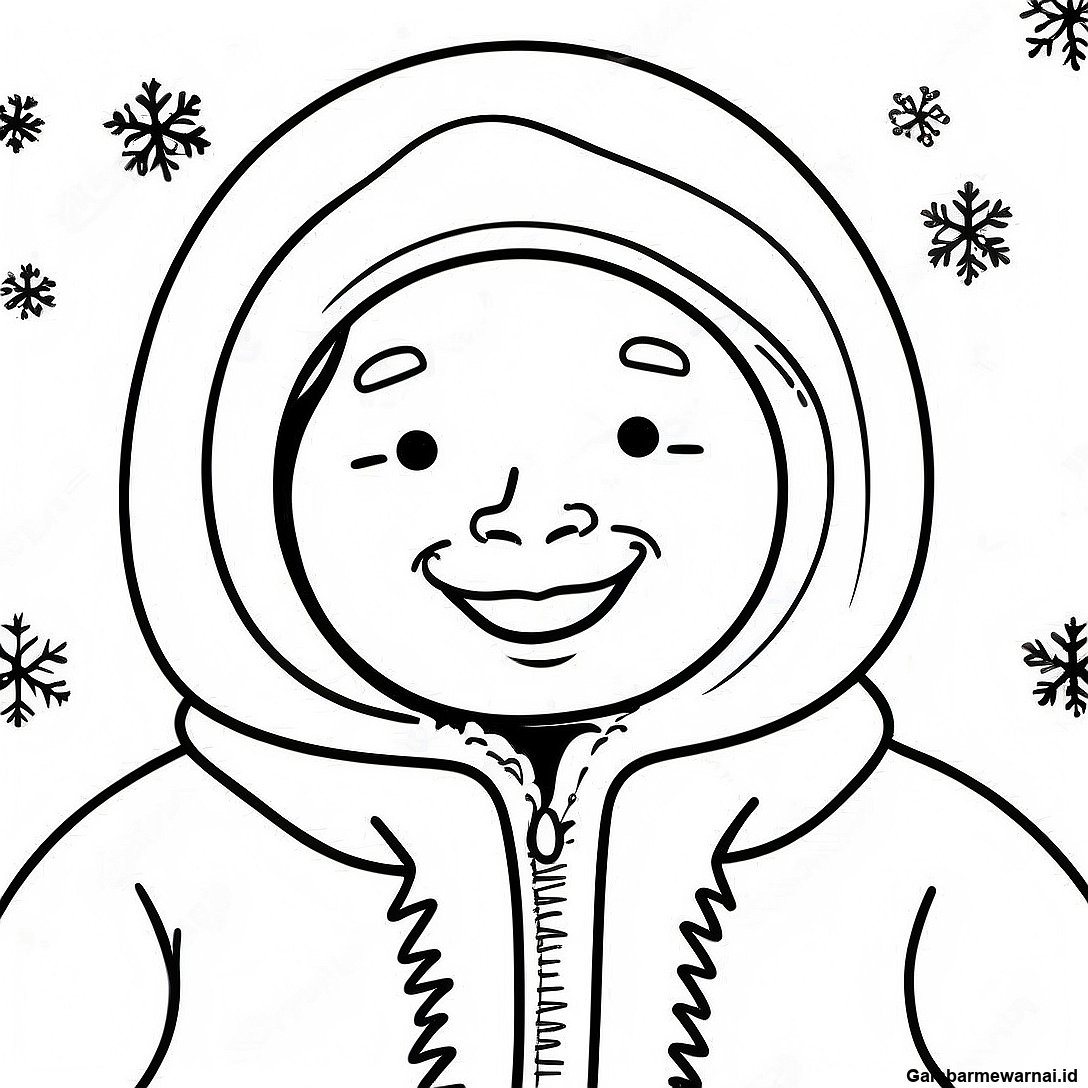 Halaman Mewarnai Eskimo Bahagia Dengan Serpihan Salju