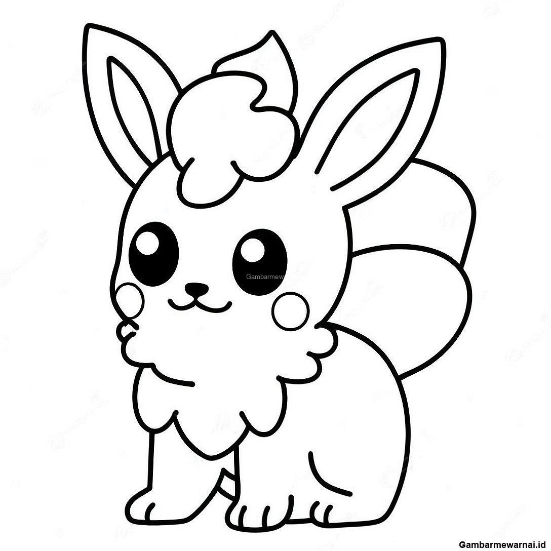 Gambar Mewarnai Eevee Imut dengan Bunga